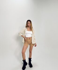 Camisa liviana de manga tres cuartos con diseño rayado. Confeccionada en una tela fresca y cómoda, ideal para looks relajados y veraniegos.