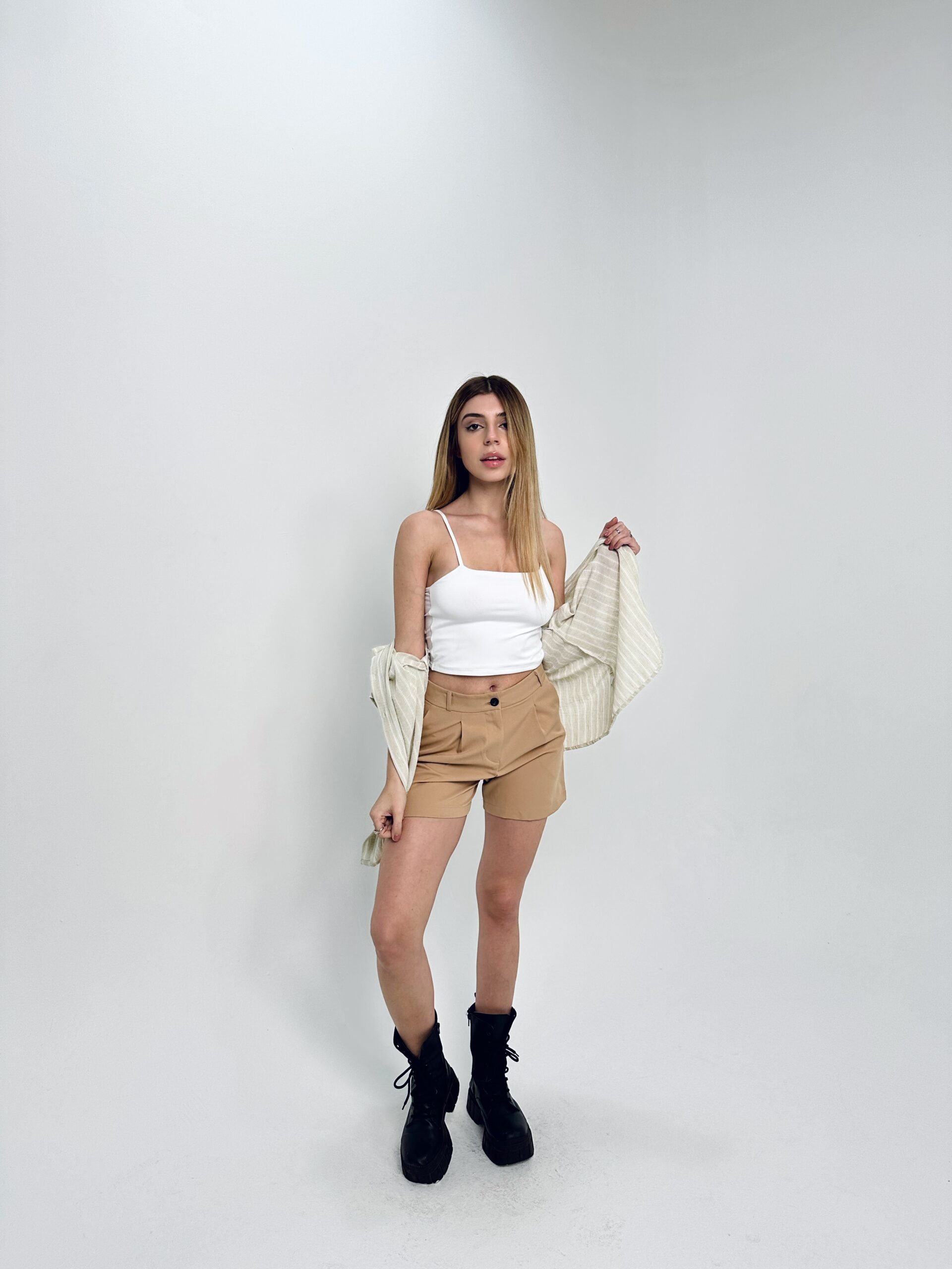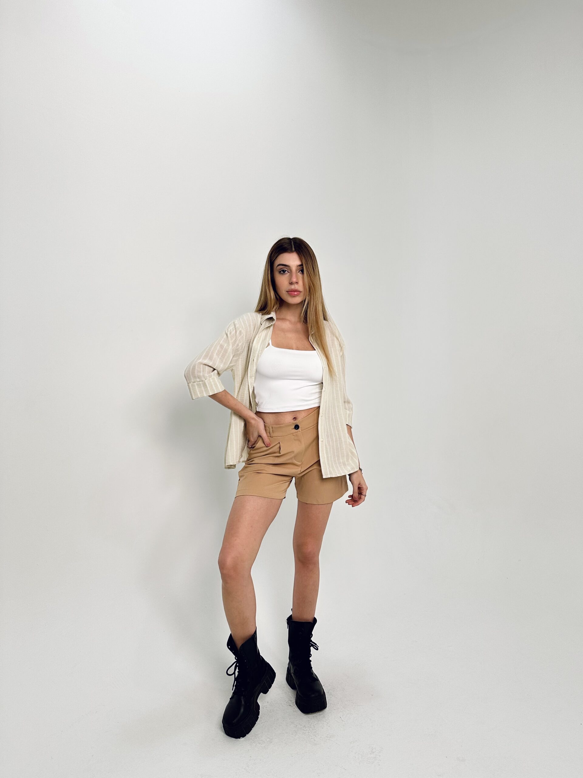 Camisa liviana de manga tres cuartos con diseño rayado. Confeccionada en una tela fresca y cómoda, ideal para looks relajados y veraniegos.