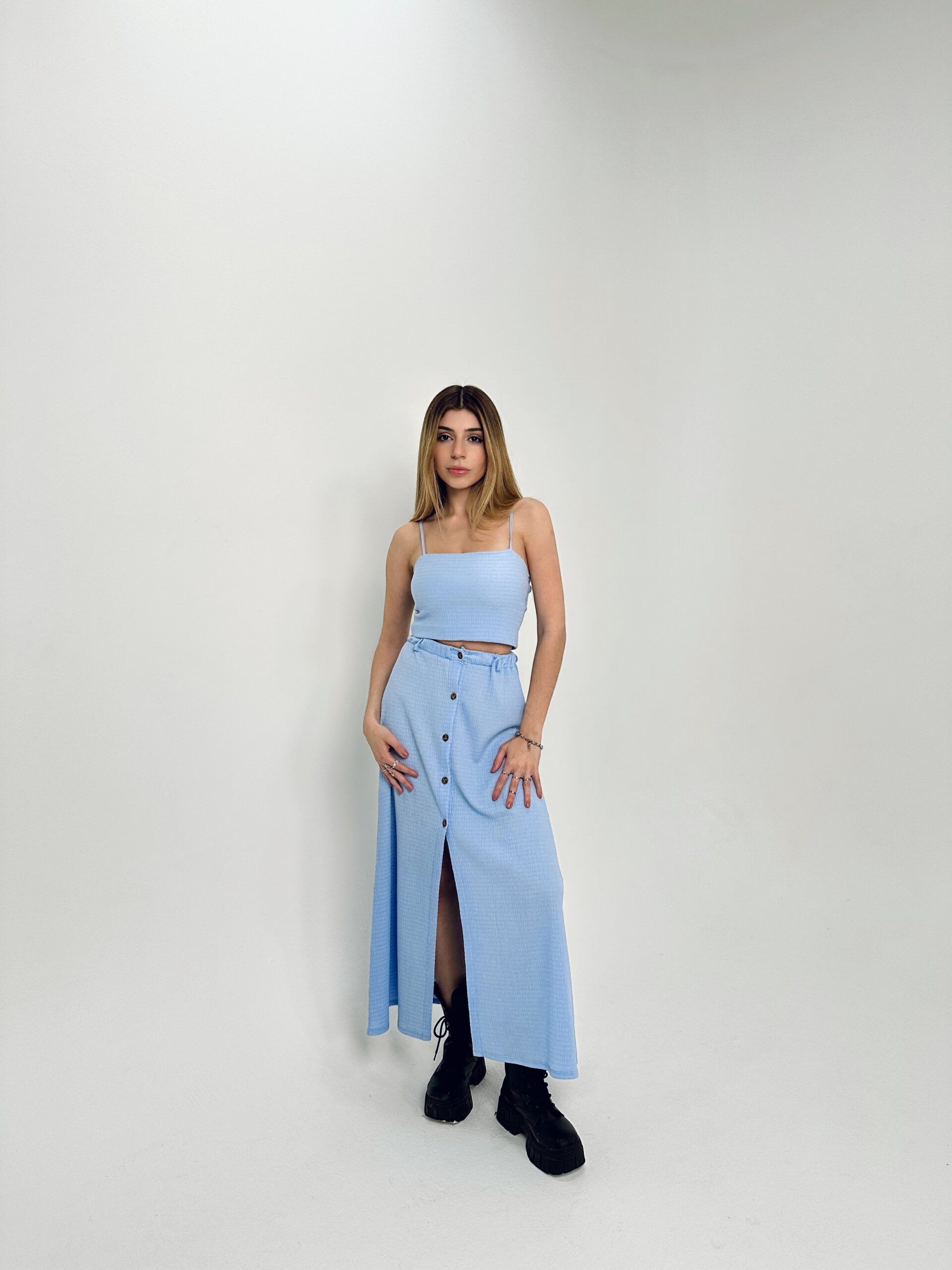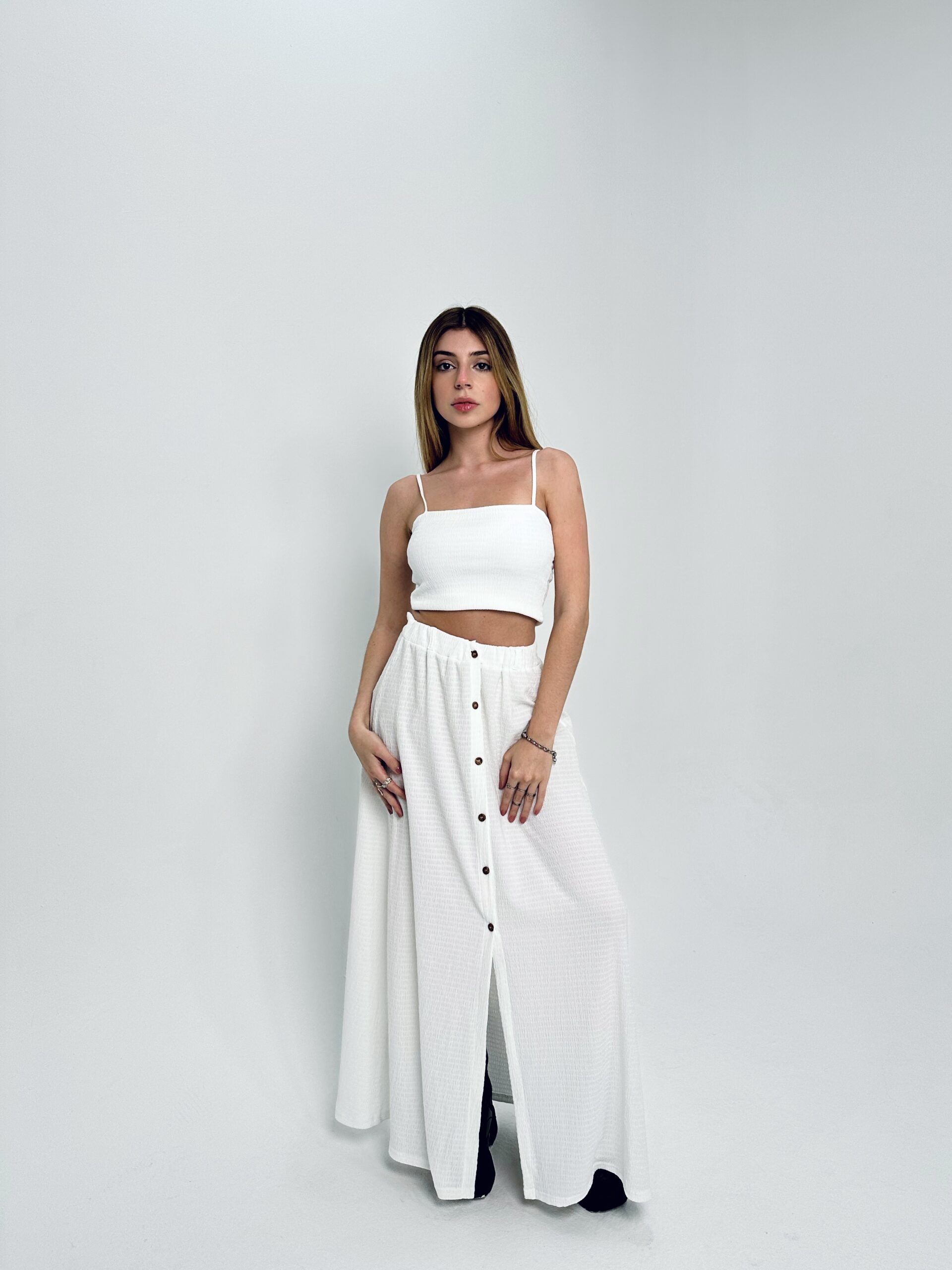 Pollera Larga Ibiza, diseño versátil y femenino. Tela liviana y corte amplio para un outfit fresco y elegante
