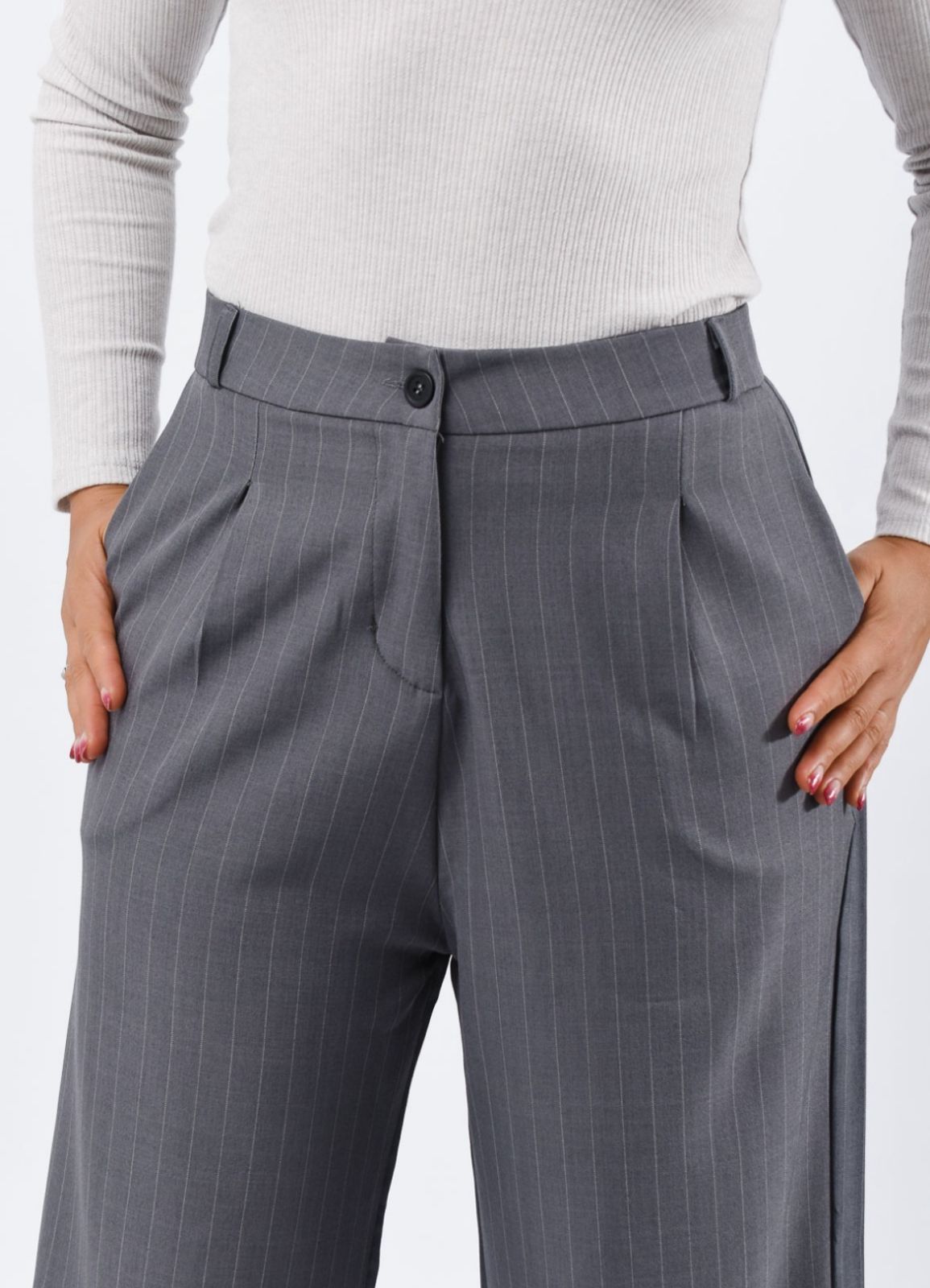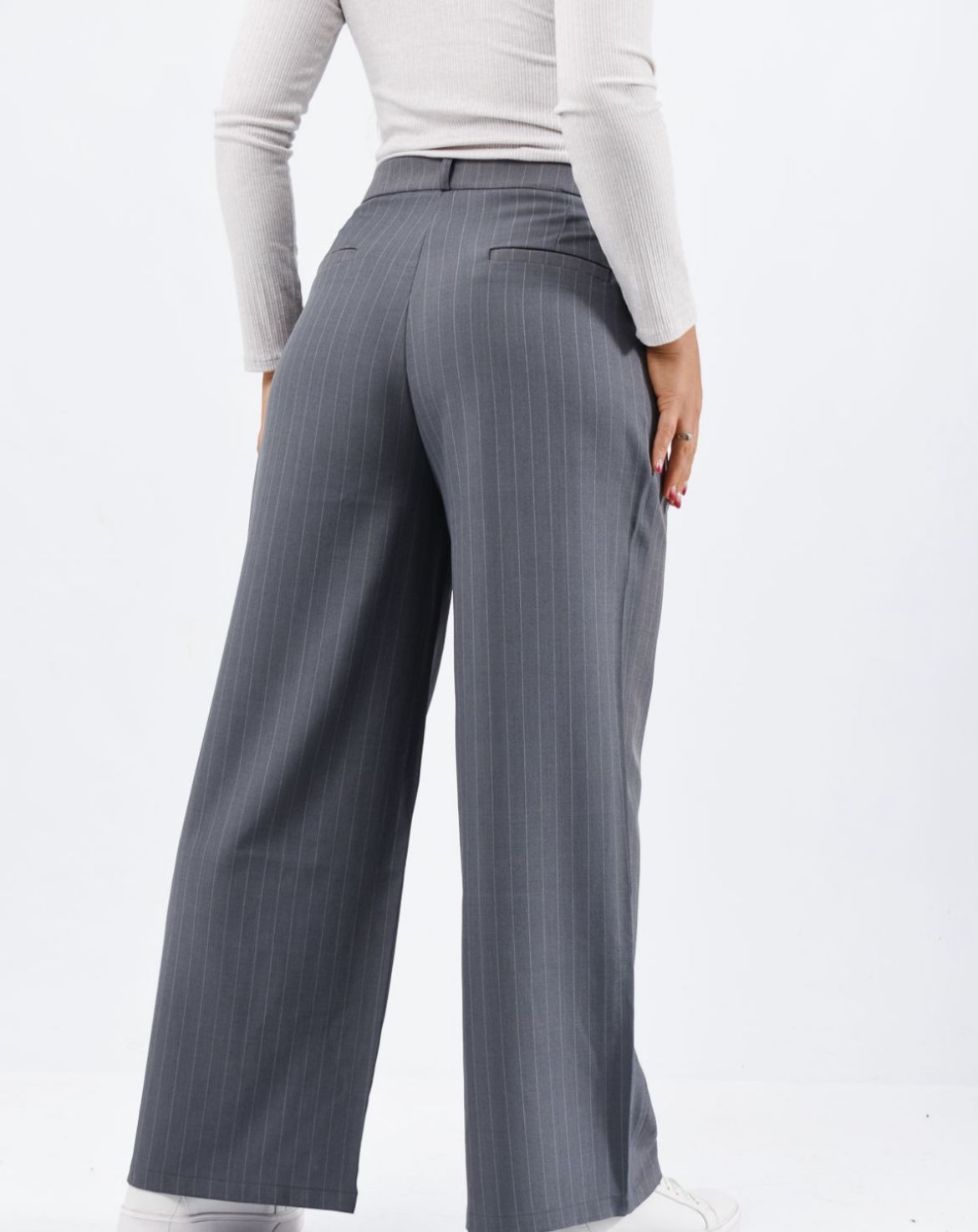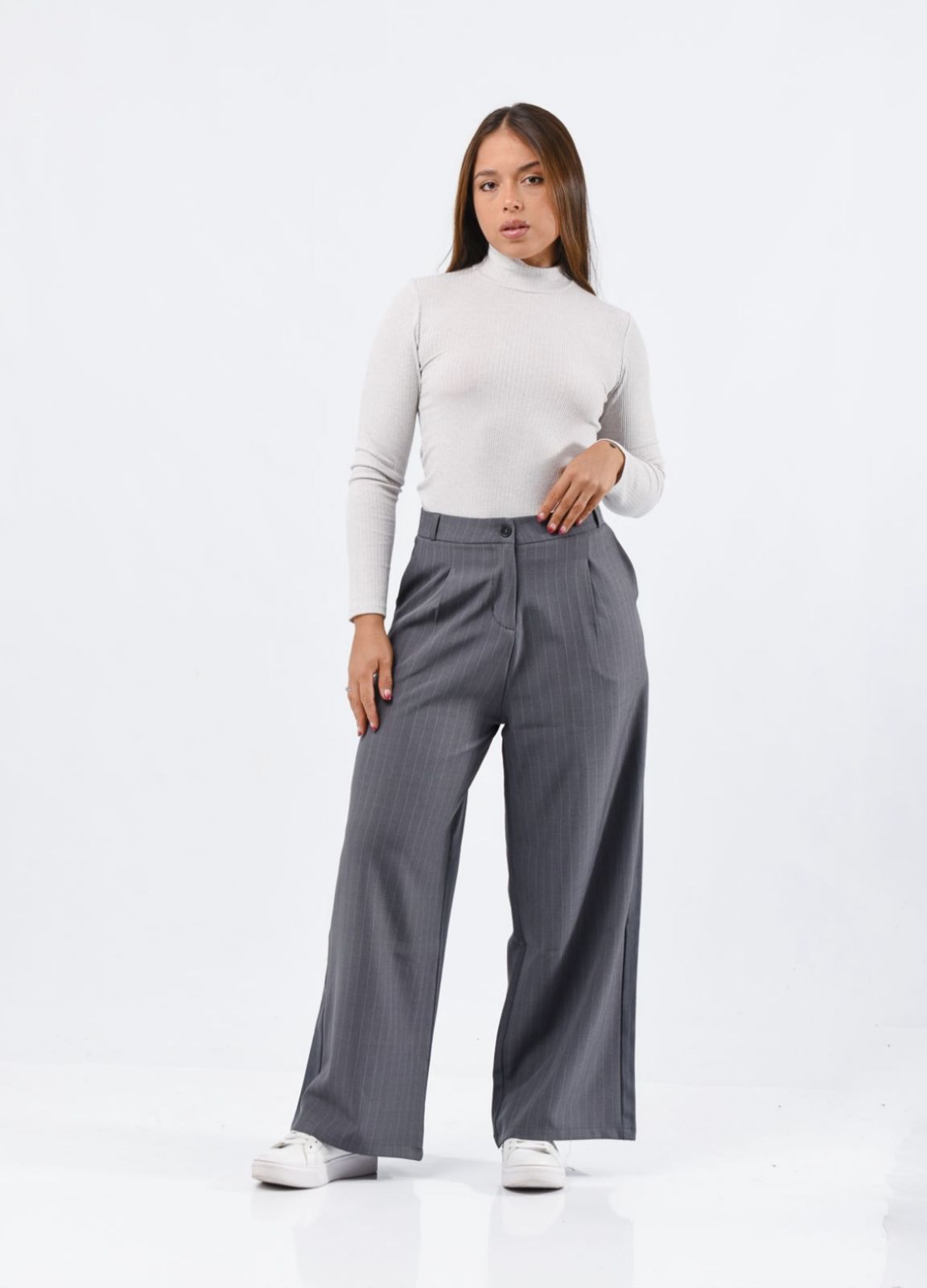 Pantalón sastrero rayado, con corte recto y calce amplio que aporta elegancia y comodidad. Confeccionado en tela sastrera de excelente caída, ideal para looks formales o combinaciones urbanas modernas.